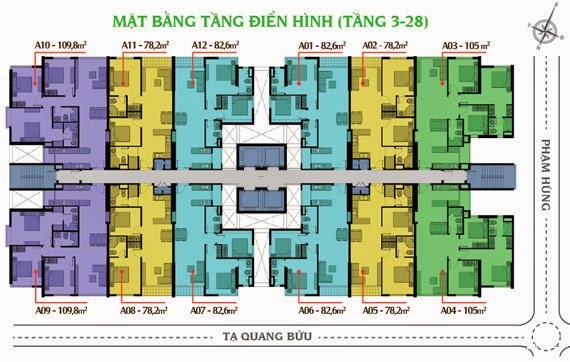 Mặt bằng tầng 3 của Căn Hộ Giai Việt Residence với hai dãy căn hộ được chia thành 6 căn và diện tích không chênh lệch nhiều nên bạn không phải bận tâm với diện tích căn hộ.
