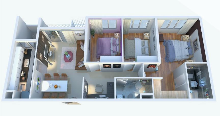 Diện tích và thiết kế căn hộ đa dạng với 2 hoặc 3 phòng ngủ, đáp ứng mọi nhu cầu lựa chọn của những gia đình trẻ.